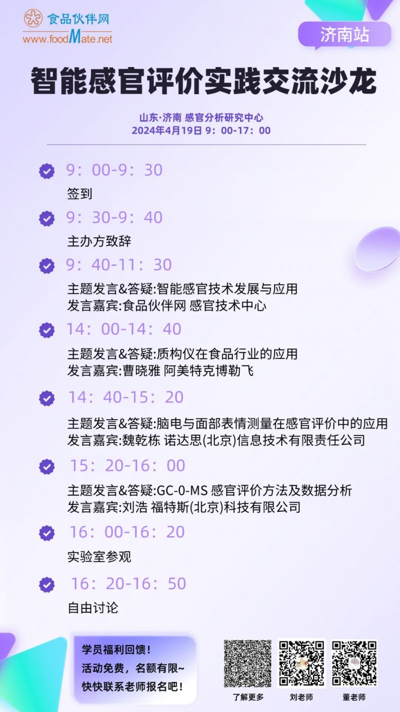歡迎食品、原料、農(nóng)產(chǎn)品、預(yù)制菜、日化、醫(yī)藥等行業(yè)的感官評(píng)測(cè)人員、品管品控人員、新產(chǎn)品開(kāi)發(fā)人員,高校、科研院所等從事感官分析的研發(fā)技術(shù)人員,智能儀器機(jī)械設(shè)備廠家等相關(guān)人員報(bào)名參與。