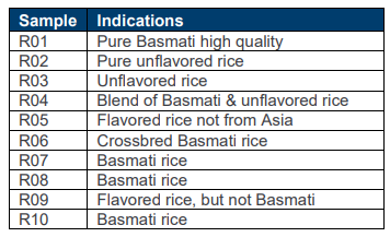 初步實驗,準(zhǔn)備了巴斯馬蒂大米以及其他品種的大米,用電子鼻進行氣味分析。