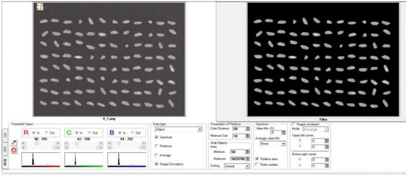 大米的視覺質(zhì)量,一般是關(guān)注其白堊米的含量,以及米粒的完整度等,使用 IRIS 電子眼,可基于視覺和形狀對大米的視覺質(zhì)量進行區(qū)分。