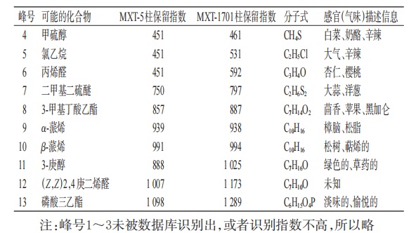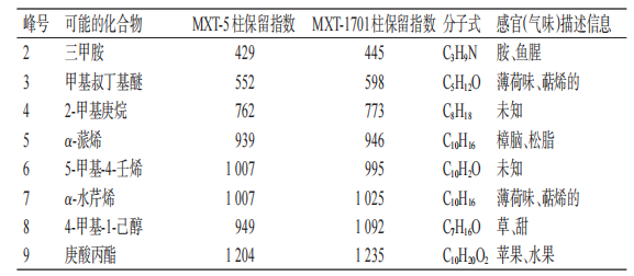 兒童型香囊氣味成分分析結(jié)果