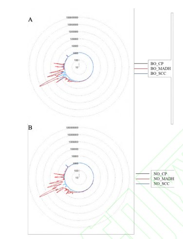 圖5 基于電子鼻分析的甜橙精油雷達指紋圖譜:(A)血橙(B)臍橙