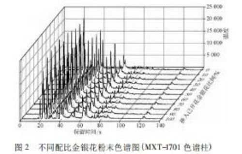 采用HeraclesⅡ超快速氣相電子鼻對(duì)不同調(diào)配比例金銀花粉末樣品的色譜數(shù)據(jù)進(jìn)行采集,分析后得出,各調(diào)配比例金銀花粉末的可能成分及感官描述信息基本相同,僅含量存在一定差別。同時(shí),得出己醛氣味可能為判別金銀花粉末質(zhì)量的關(guān)鍵因素。此外,通過(guò)PCA,DFA,實(shí)現(xiàn)了打粉后摻入完全開(kāi)花金銀花比例的快速識(shí)別,而且2種模型起到了相互驗(yàn)證的作用。在采用濃度量化建模后,還實(shí)現(xiàn)了基于完全開(kāi)花金銀花摻入比例的粉末質(zhì)量分級(jí)。綜前所述,HeraclesⅡ超快速氣相電子鼻分析可以作為一種快速鑒別金銀花粉末質(zhì)量的方法。