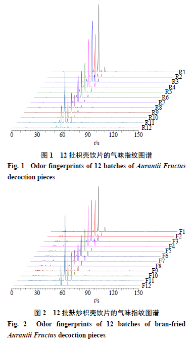 本研究基于Heracles NEO超快速氣相電子鼻技術(shù)結(jié)合Arochembase數(shù)據(jù)庫(kù)比對(duì)分析,采用氣味指紋圖譜、多變量統(tǒng)計(jì)分析方法對(duì)枳殼麩炒前后氣味差異標(biāo)志物進(jìn)行快速識(shí)別,以期從氣味上快速鑒別生、麩炒枳殼飲片,為生、麩炒枳殼飲片的質(zhì)量控制提供參考。