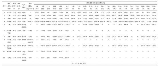 物質(zhì)定性分析通過正構(gòu)烷烴標樣計算保留指數(shù),利用AroChembase數(shù)據(jù)庫將0d樣品與所有樣品的差異色譜峰分別進行定性及含量分析,可能含有的揮發(fā)性化合物見表3,此次試驗所用儀器為質(zhì)量型檢測器-氫離子火焰監(jiān)測器,揮發(fā)性化合物含量的多少表征在峰面積上,表3中呈現(xiàn)了不同揮發(fā)性化合物的峰面積。結(jié)果顯示,三甲胺、乙醇、2-丙醇的含量隨著時間的增長也隨之增長,在未阻隔的透明PET瓶樣品中增長尤為明顯。戊醛作為光敏作用的產(chǎn)物之一,其存在于透明PET瓶所有檢測時間點內(nèi),阻光色油8%和10%阻隔PET瓶的7~31d,阻光色油12%阻隔PET瓶14~31d,且該物質(zhì)在透明PET瓶中的含量要遠高于阻隔PET瓶。12%阻隔PET瓶中檢測到的時間晚于8%和10%阻隔PET瓶,可見稍高的質(zhì)量分數(shù)對戊醛的產(chǎn)生有一定的延緩作用。2-甲基丁醛、二甲基二硫、苯甲醛和己酸僅在未避光的透明PET樣品檢測到,在14d達到頂峰而后下降。Kim等的研究表明,戊醛、2-丙醇和二甲基二硫是由光敏作用產(chǎn)生的,二甲基二硫會隨著光照時間的增加,濃度不斷增加。乙酸具有奶香味及酸味,可能存在于所有樣品,不同的是該化合物在透明PET瓶中的含量顯著高于有避光措施的阻光色油PET瓶樣品,其隨著光照時間的延長,乙酸含量也隨之增加。苯甲醛作為牛奶光氧化的特征化合物,在一定程度上表征了牛奶的品質(zhì)情況,其含量愈高品質(zhì)愈下降。由表3所示,苯甲醛出現(xiàn)在透明PET各時間點的樣品中,14d時最高,之后下降趨于平穩(wěn),結(jié)合感官品評結(jié)果來看,該樣品3d時非培訓(xùn)型評價員的整體喜好度已處于接受程度以下,可見光照嚴重影響了鮮牛奶的整體感官品質(zhì)。