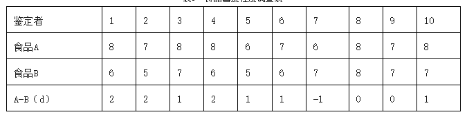 如果t>t表,則兩種食品之間存在顯著差別;如果t<t表,則兩個(gè)食品之間無(wú)顯著差別。