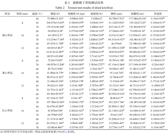 01 獼猴桃干的質(zhì)構(gòu)特性結(jié)果分析