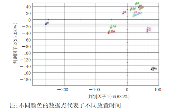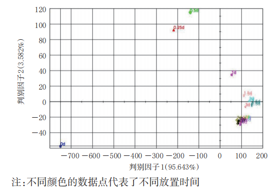 圖5 不同放置時間兒童型香囊樣品判別因子分析圖