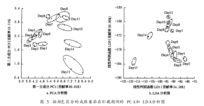 成熟期番茄在貯藏中的電子鼻檢測分析