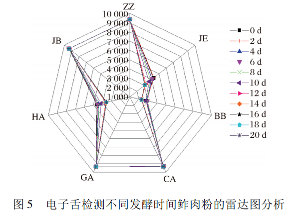 電子舌對不同發(fā)酵時間鲊肉粉的雷達圖分析