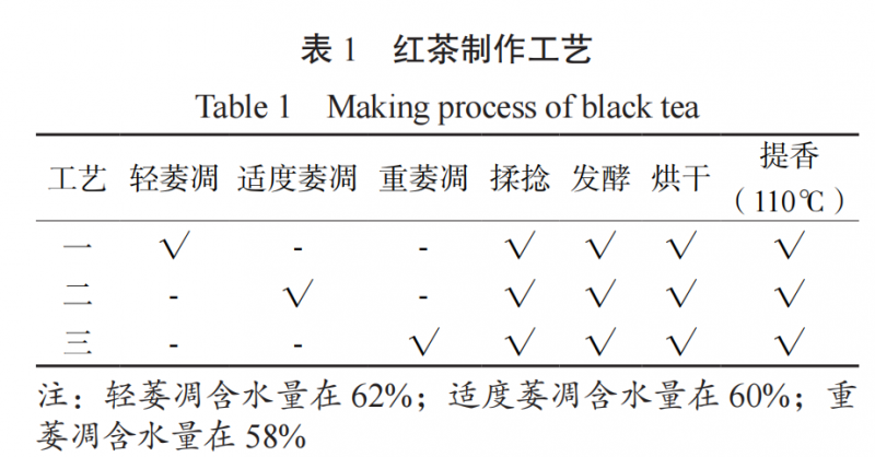 萎凋、揉捻(切)、發(fā)酵、干燥是紅茶加工的基本工序,各道工序不同程度地影響和決定了紅茶的最終品質(zhì)。而萎凋是紅茶加工的首道工序,受溫度、時(shí)間、攤放厚度等因素的影響。