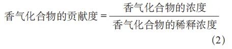 香氣化合物的貢獻(xiàn)度的計(jì)算公式為: