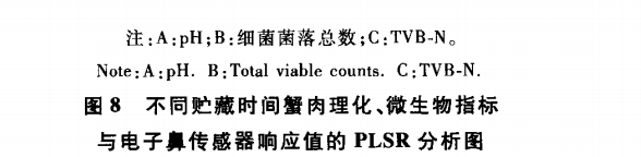 傳感器響應值對不同貯藏時間蟹肉的理化指標的預測