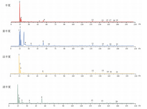 使用HeraclesⅡ超快速氣相電子鼻獲取半夏不同炮制品的氣相色譜圖,利用多元分析方法,得到半夏不同炮制品的氣味差異標(biāo)志物。