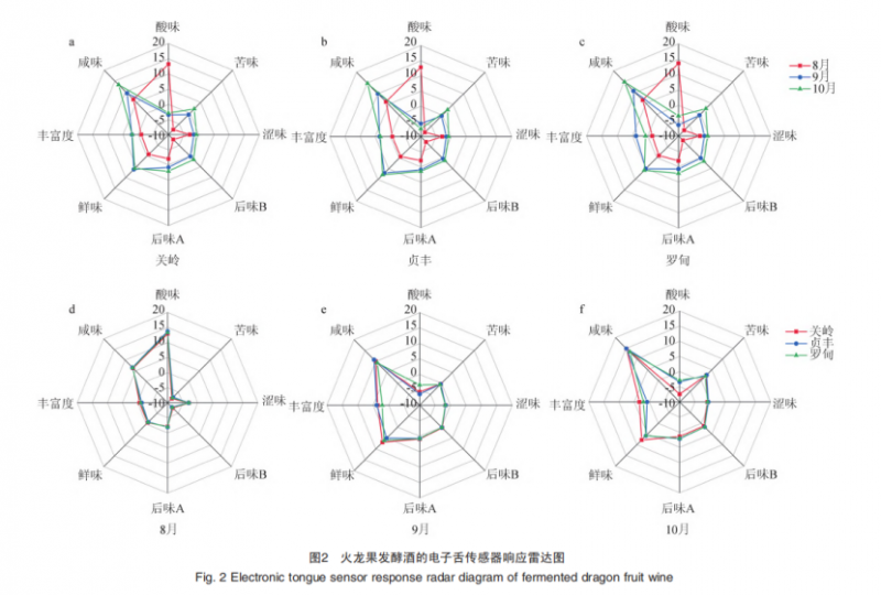02不同產(chǎn)地和采收時間火龍果發(fā)酵酒的滋味特征