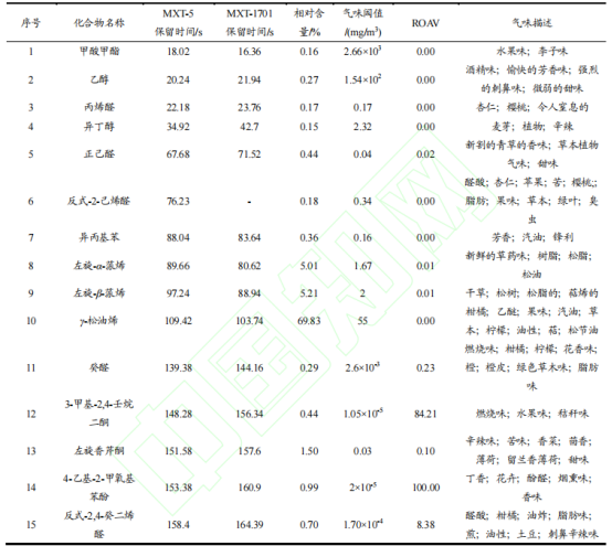 表4 草果主要差異揮發(fā)性化合物定性與定量分析結(jié)果